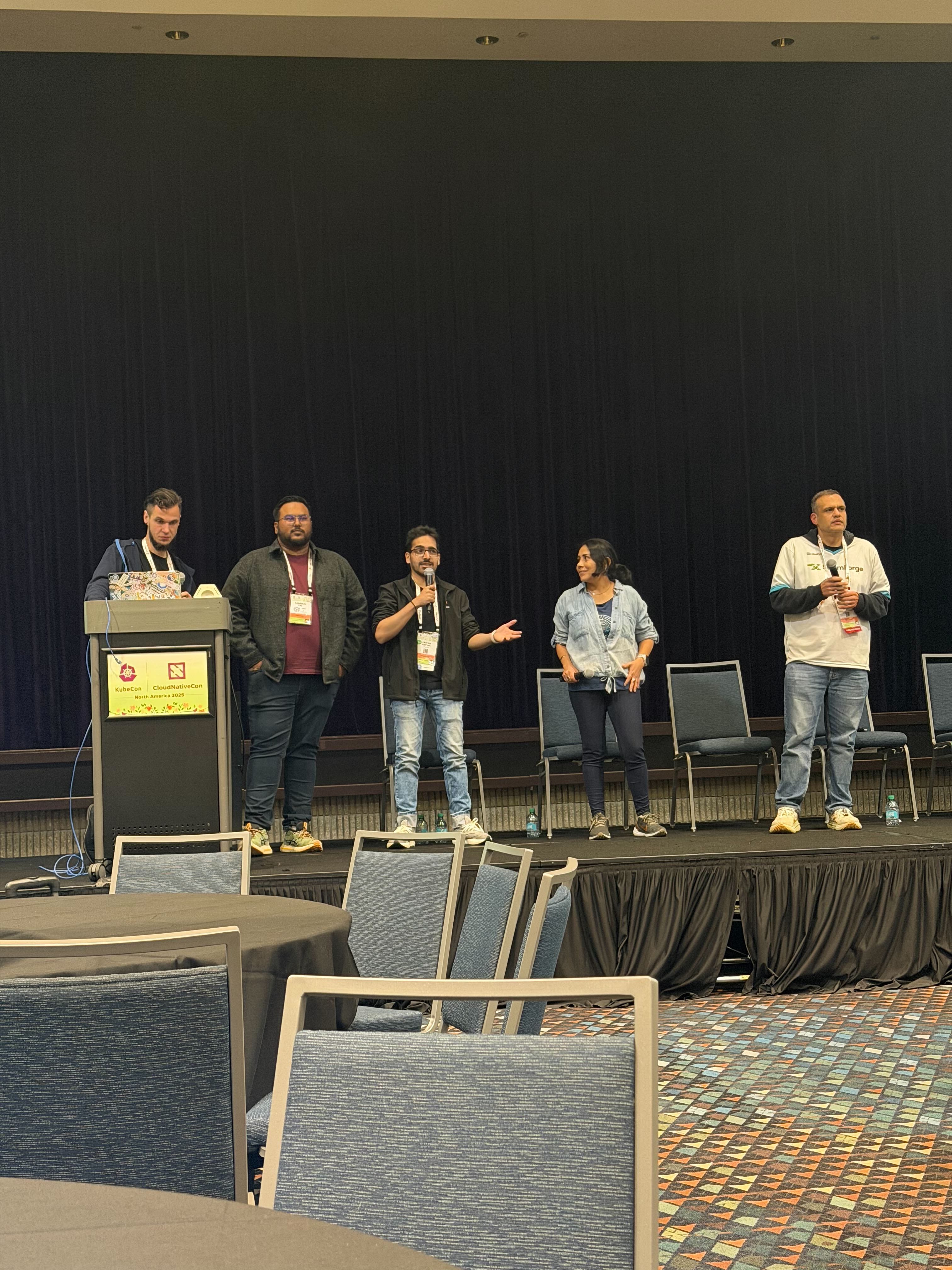 This KubeCon was special for me → packed with meetings and sessions right from Rejekts. Although my Rejekts talk wasn’t originally planned, I ended up presenting “Beyond the Default Scheduler: Navigating GPU Multitenancy in the AI Era” with Hrittik, where we discussed GPU architecture, GPU sharing, and tenancy models for AI. I then attended the Maintainers Summit, met some amazing maintainers, and joined a few TAG roundtables.